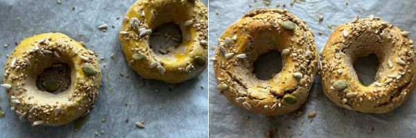 Spennellateli con il tuorlo e aggiungete i semi misti o quello che preferite.