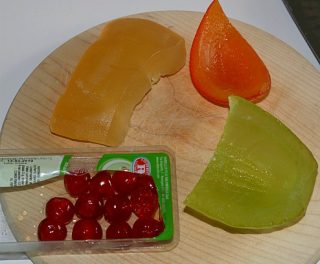 Nel frattempo tagliate a fettine sottili il cedro candito, la zucca, tagliate a spicchi l‘arancio candito e tenere tutto da parte.