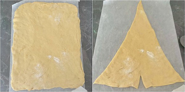 Arrotolate il triangolo su se stesso e formate il cornettone.