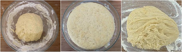 Trascorso il tempo di lievitazione, riprendete l’impasto e mettetelo su un piano da lavoro leggermente infarinato.