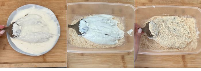 Passate la melanzana pastellata nel pangrattato e ricopritela completamente.