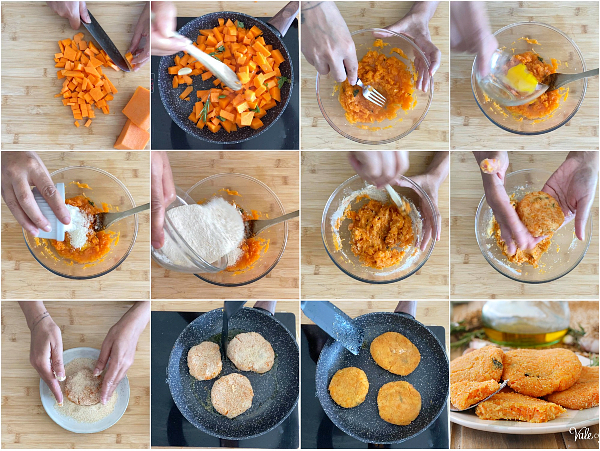 Potete preparare le cotolette di patate e zucca aggiungendo all’impasto una patata lessa schiacciata.