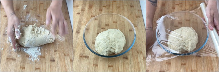 Trasferite il composto su un piano da lavoro leggermente infarinato ed impastate per 10 minuti abbondanti.