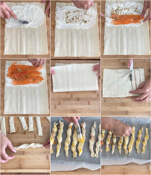 Vediamo come fare i grissini di sfoglia salmone e pistacchi!