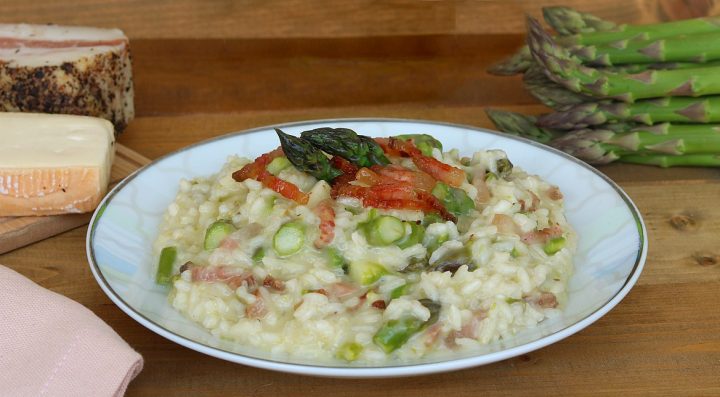 RISOTTO CON ASPARAGI TALEGGIO E GUANCIALE CROCCANTE