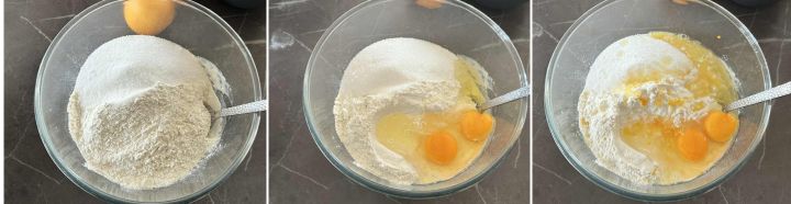 Mettete l’emulsione in una ciotola più grande e aggiungete 2 cucchiai di farina e 1 cucchiaio di zucchero presi dagli ingredienti già pesati.