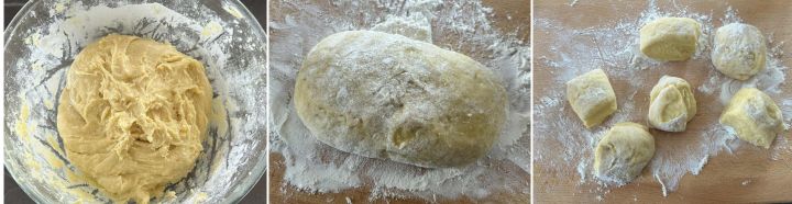 Trasferite l’impasto su un piano da lavoro infarinato, lavoratelo e formate un panetto, dividetelo in più pezzi, a me ne sono venuti 6.