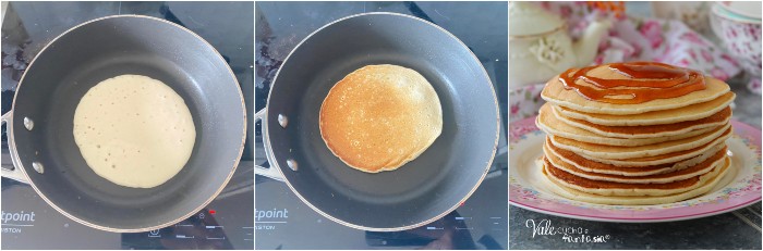 Mentre cuocete i pancake metteteli in un piatto e continuate in questo modo fino ad esaurimento dell’impasto.