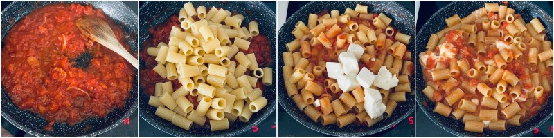 Cuocete la pasta del formato che più vi piace e scolatela al dente nel sugo di pomodoro.