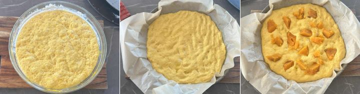 Trascorso il tempo di riposo l’impasto sarà triplicato di volume, mettetelo nella teglia per pizza con carta forno oliata o bagnata e strizzata.