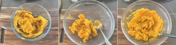 Vi consiglio di regolarvi al tatto con la farina, molto dipende dalla qualità di zucca che userete, vi consiglio la zucca delica perché è più asciutta.