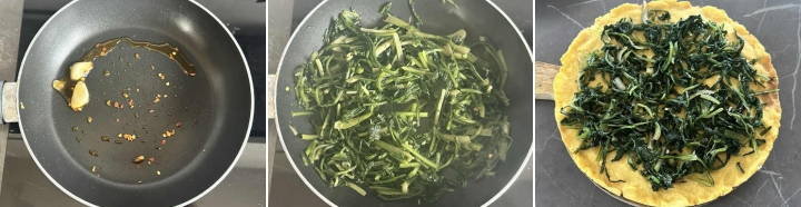 In una padella mettete aglio, olio e peperoncino, lasciate rosolare e aggiungete la cicoria bollita, il sale e lasciate insaporire.