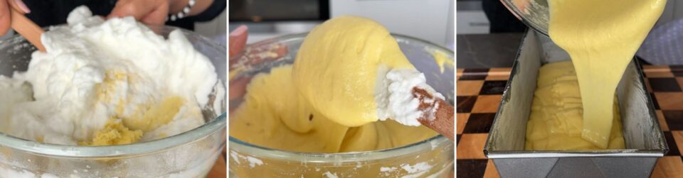 Montate anche gli albumi a neve e uniteli poco per volta all’impasto continuando a mescolare con la spatola.