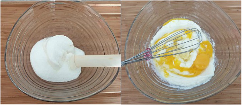 In una ciotola ammorbidite la ricotta con lo zucchero, potete aiutarvi con una spatola o se preferite lo sbattitore elettrico.