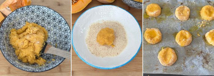 Date la forma alle polpette e continuate in questo modo fino a terminare l’impasto di zucca.