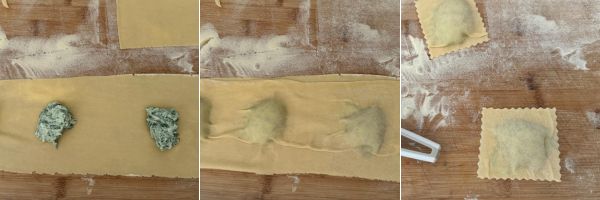 Preparazione dei ravioli ricotta e spinaci