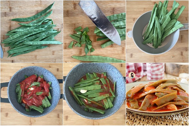 Potete eseguire questo passaggio a mano come per i classici fagiolini oppure con un coltello come ho fatto io per far prima.