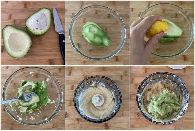 Frullate per qualche secondo e mettete l’hummus di ceci e avocado in una ciotola.