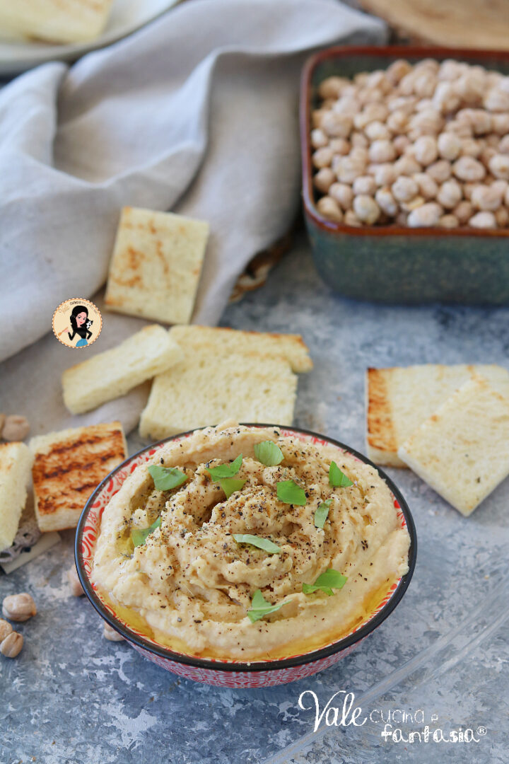 Si tratta di una salsa di ceci e tahina che è amata in tutto il mondo, io ne vado matta, sarà che adoro le ricette con i ceci in ogni versione, insomma lo confesso, sono i miei legumi preferiti, ora vi racconto un piccolo aneddoto, ogni tanto mi metto a dieta, ebbene si, cucino, sono una food blogger ma ahimè il mio metabolismo non mi aiuta e necessito di mangiare sano ogni tanto, alla mia nutrizionista ho chiesto esplicitamente di non farmi mancare pasta e ceci, le ho detto “Dottorè mi tolga quello che vuole ma pasta e ceci no“! Lei si è messa a ridere dicendomi, “Da te mi aspettavo più che mi chiedessi la carbonara“, Quindi questo vi fa capire quanto io ami questo legume.