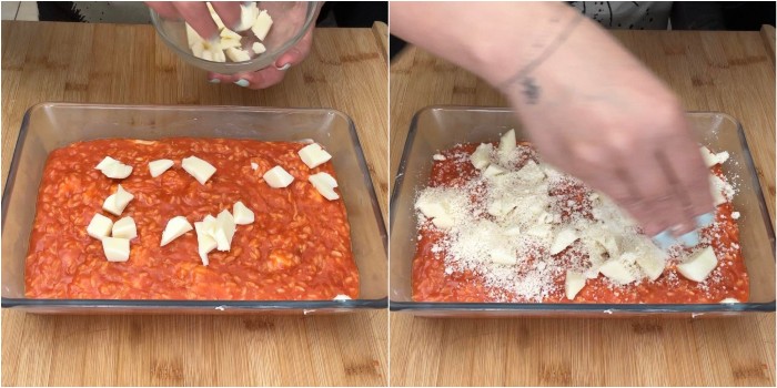 Il vostro riso al forno con provola e sugo è pronto!