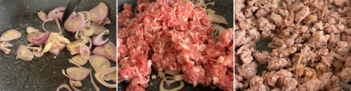 Lasciatelo rosolare e poi aggiungete le salsicce private del budello e tritate.