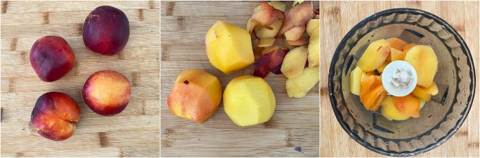 Mettete le pesche a pezzetti nel mixer o nel frullatore.
