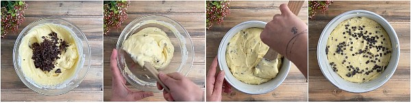 Mettete nell’impasto della torta anche l’olio di semi e le gocce di cioccolato o il cioccolato tritato.