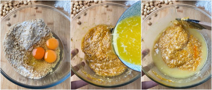Mescolate l’impasto alle nocciole fin quando le uova saranno ben assorbite.
