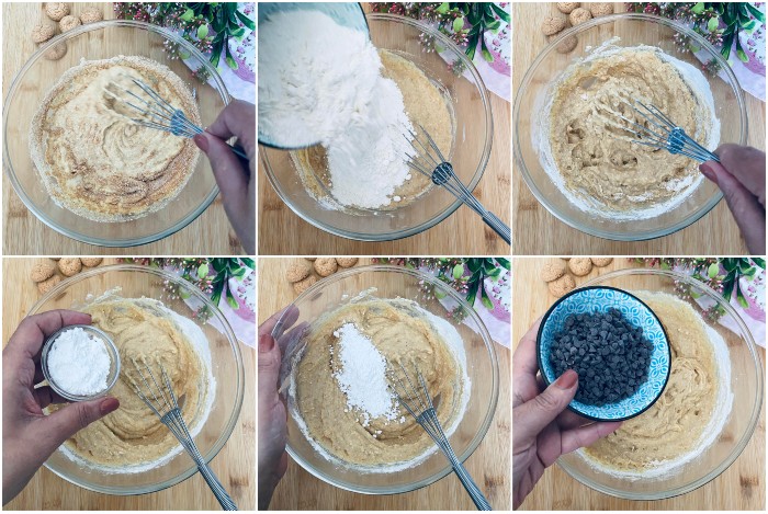 Continuate a mescolare con la frusta e quando l’impasto sarà liscio e senza grumi aggiungete anche le gocce di cioccolato.