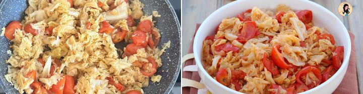 La verza al pomodoro si conserva in frigo, in un contenitore ermetico per 2 giorni.