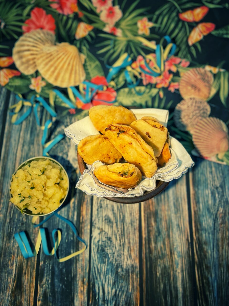 Il segreto della sua bontà risiede nel contrasto tra la crosta leggera, resa ariosa dall’uso del lievito istantaneo (il classico baking powder), e un cuore cremoso di patate schiacciate. Il ripieno non è una semplice purea, ma un’esplosione di aromi data dal Geera (cumino tostato) e dal Green Seasoning, l’iconico battuto di erbe caraibiche che dona freschezza e carattere.
