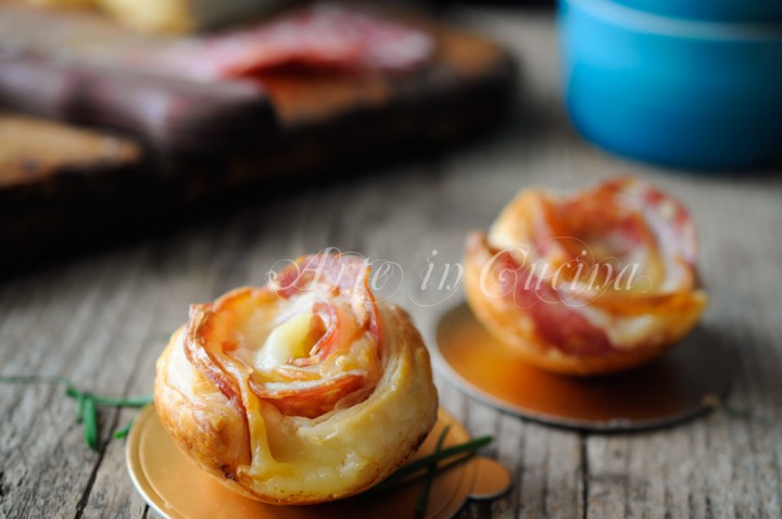 ROSE DI SFOGLIA AL SALAME, ricetta finger food veloce, idea snack sfizioso in poco tempo, antipasto o sfiziosità per feste e buffet, stuzzichini per aperitivo Rose di sfoglia al salame ricetta finger food veloce Semplicissime e buone le rose di sfoglia al salame, fatte tempo fa con un altro tipo…