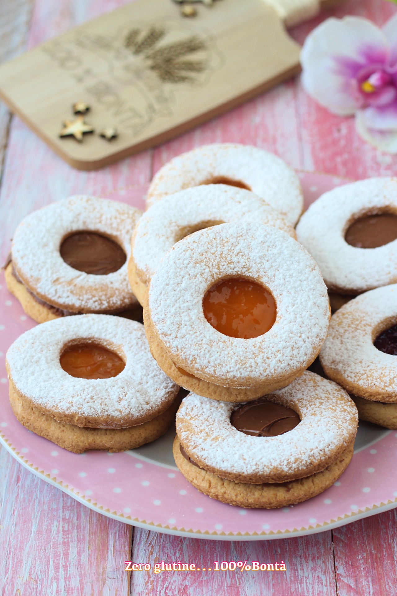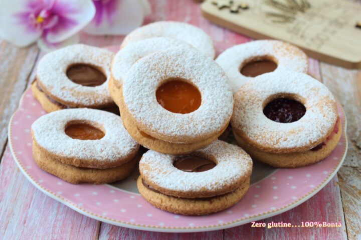 Biscotti Occhi di bue friabili e leggeri con pasta frolla allo strutto senza glutine, buonissimi come quelli che vendono nelle pasticcerie. Perfetti da servire come dolce della Domenica, da regalare o da mangiare a colazione.