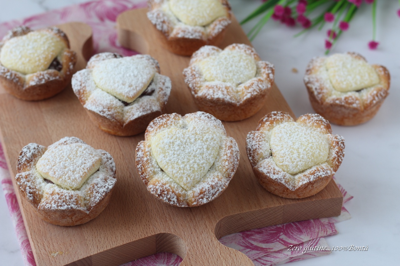 La base di pasta frolla, delicata e burrosa, racchiude un cuore cremoso di Nutella, sormontato da un piccolo cuore di frolla che li rende ancora più romantici e scenografici. Una ricetta facile da realizzare, perfetta anche da preparare con i bambini, che unisce semplicità e gusto in ogni morso.