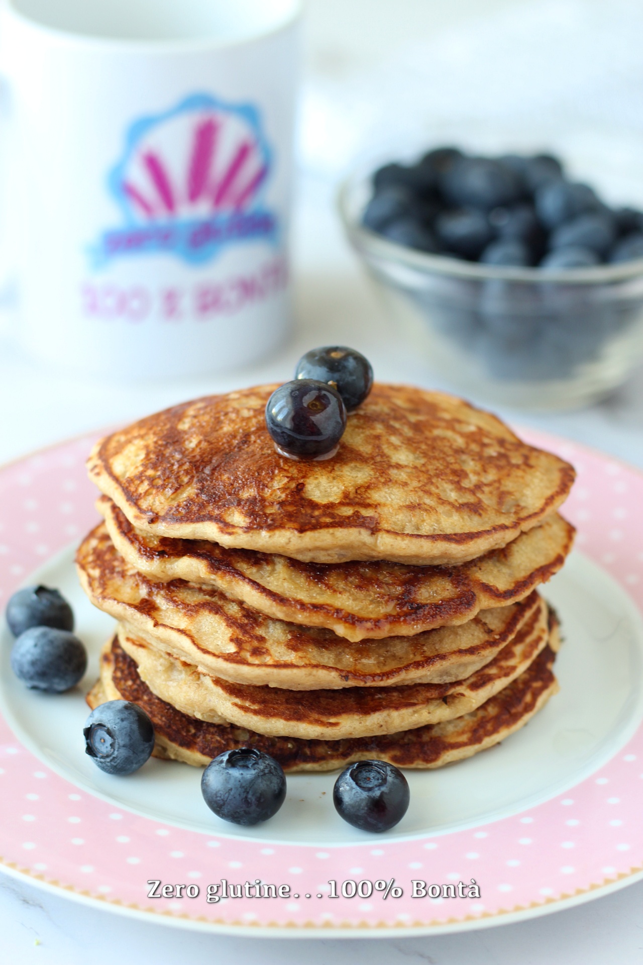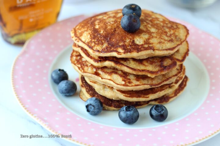 Decorare con mirtilli e sciroppo d’acero.