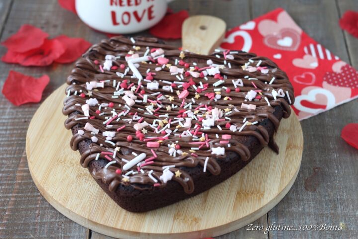 Torta Brownies a forma di cuore umida, intensa, super cioccolatosa e decorata con Nutella e zuccherini romantici. Perfetta per San Valentino, anniversari o ogni volta che vuoi dire ti voglio bene… con il cioccolato.