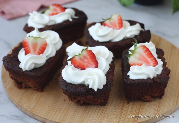 Queste tortine brownies, cotte in stampi da mini plumcake, sono morbide, umide al punto giusto e ancora più leggere grazie al trucco degli albumi montati a neve.