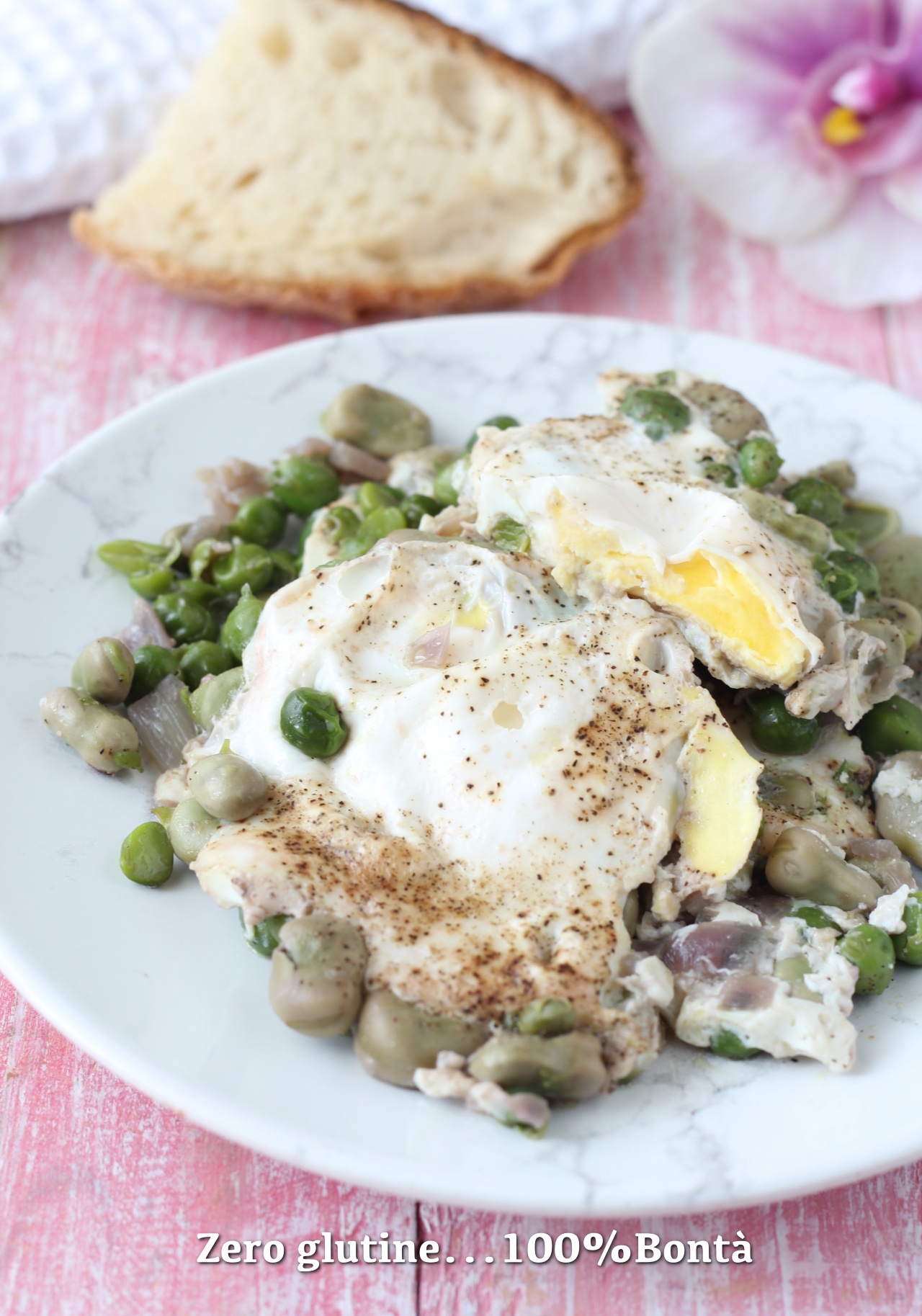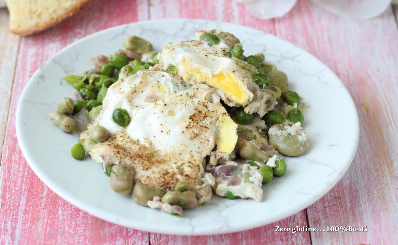 Con le Uova in padella con fave e piselli la Primavera è in tavola.
